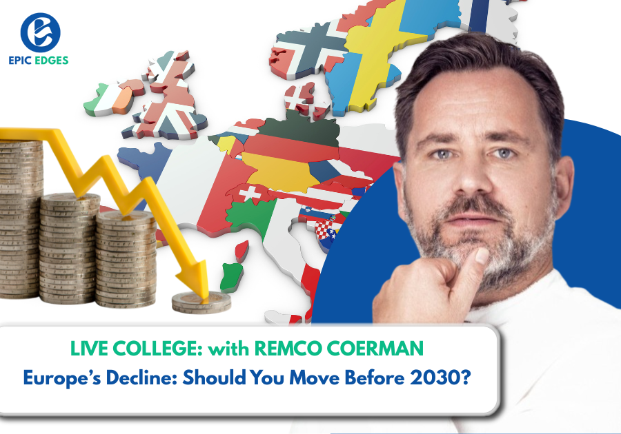 Explore the forces driving Europe’s economic and regulatory decline and what it means for your future. In this live session, Epic Edges founder Remco Coerman reveals how taxation, governance, and demographic shifts are reshaping opportunities across the continent, and what proactive steps you can take now. Spots are limited — register today to make sure you don’t miss out.